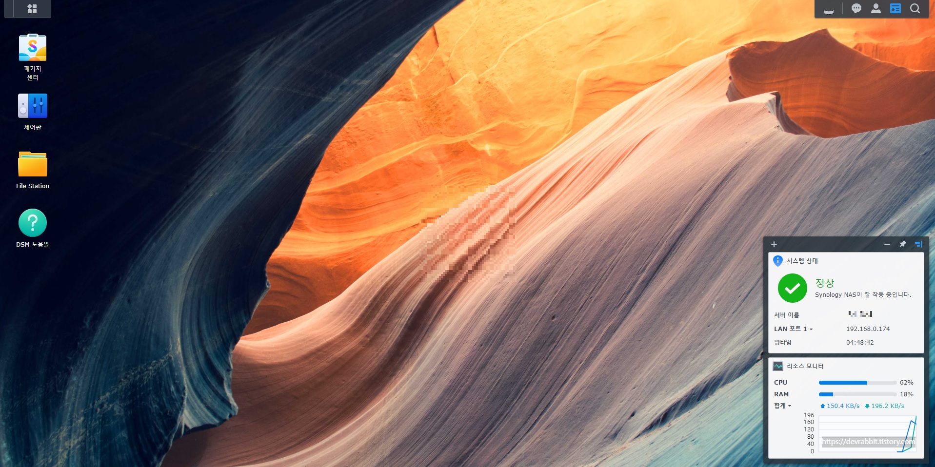 시놀로지 나스의 설치가 완료되어 로그인 후 초기 설정 방법입니다.