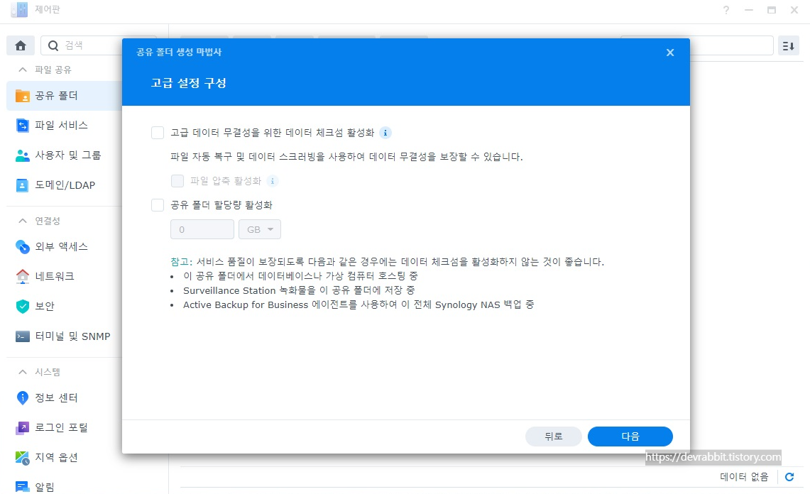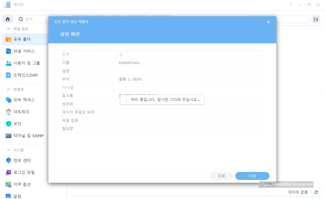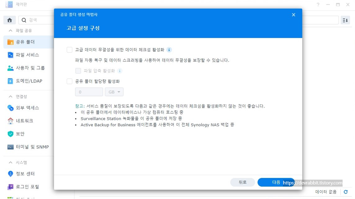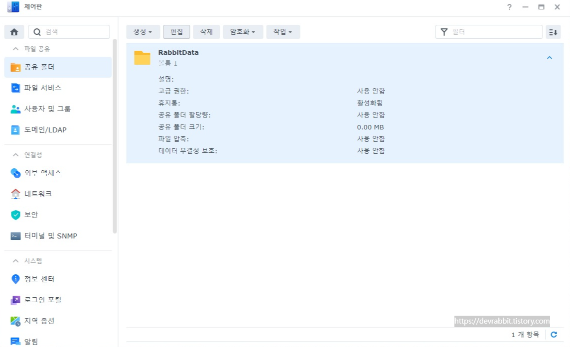 | 07. 시놀로지 나스 (Synology NAS) 초기 설정 방법 - 공유 폴더 설정 (DS1522+) (0) | 2022.07.29 |