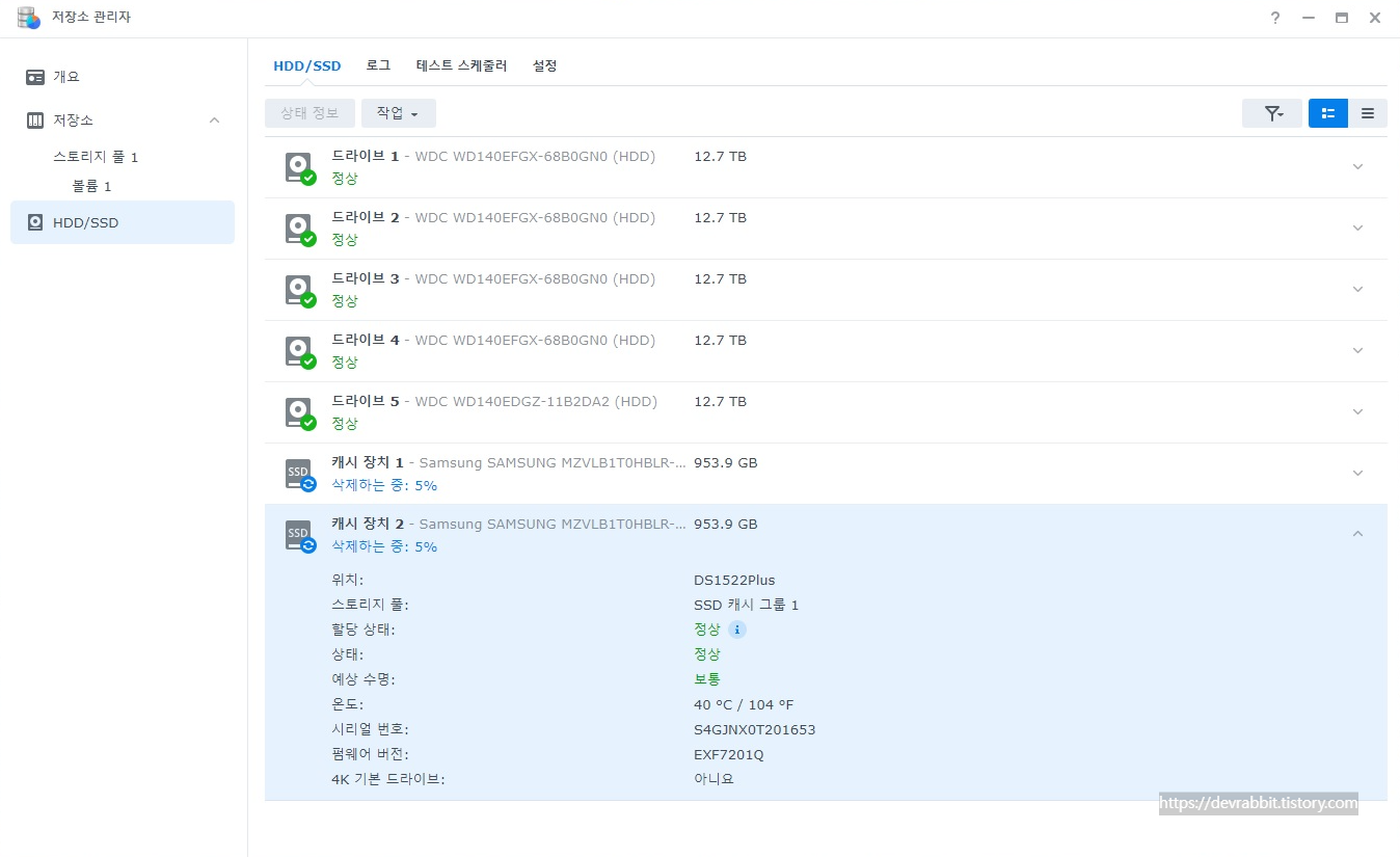 | 09. 시놀로지 나스 (Synology NAS) SSD 캐시 설정 (M.2 캐시 장착) ( (DS1522+) (0) | 2022.07.30 |